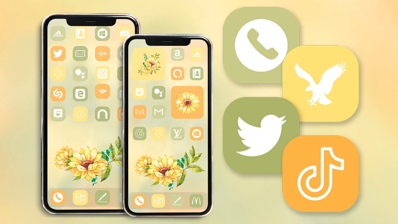 Yellow Iphone Icon Pack Ios 14 App Icons 180 Sunflower Etsy Yellow Iphone App Icon Iphone Icon