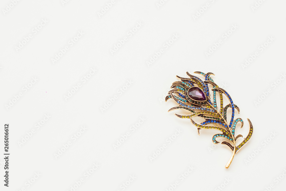 Brooch In The Shape Of Peacock Feather On White Background Stock Photo Adobe Stock